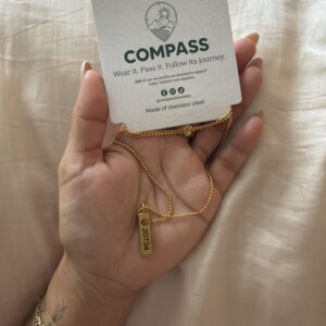 Found myself at a little store in the airport looking for some gifts to give back home and stumbled on this compass bracelet/necklace. Saw and read the description and literally passed it thinking it wasn’t something I would need. Life’s an adventure always. But I came back around with the thought of, well if life is an adventure why not follow one and enjoy it. Hence the conclusion of buying this necklace and awaiting what it entails to follow it through and through.